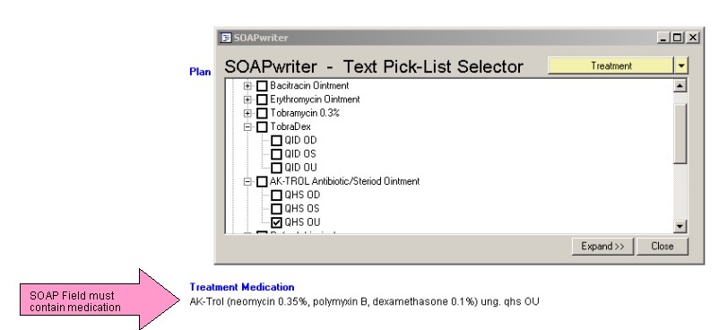 ANSWER: First, make sure the medication you wish to use is entered into the treatment field of the SOAP note (see Enter SOAPwriter Data).